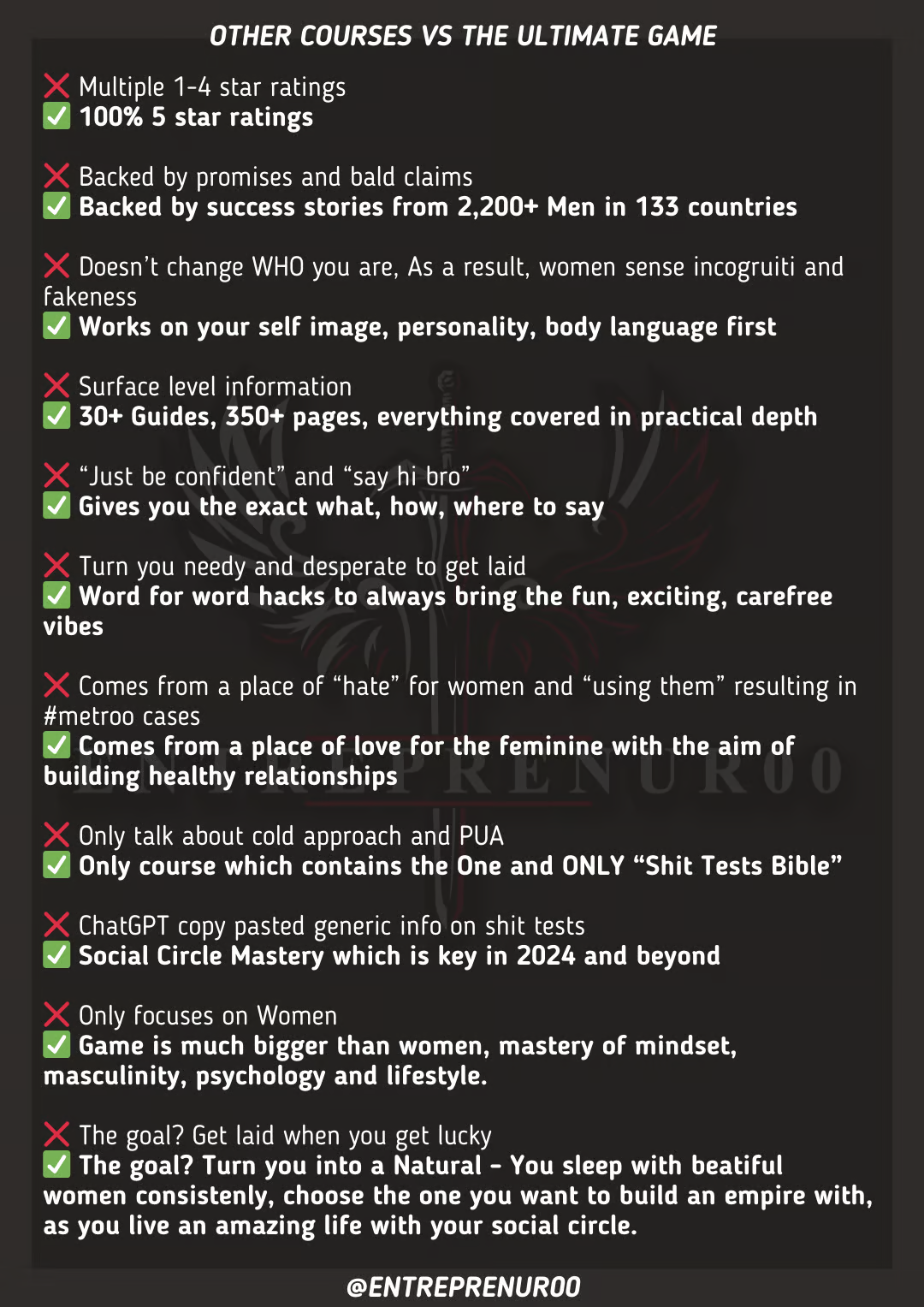 And NONE of that Shit works AT ALL. In fact, it REPELS Women.